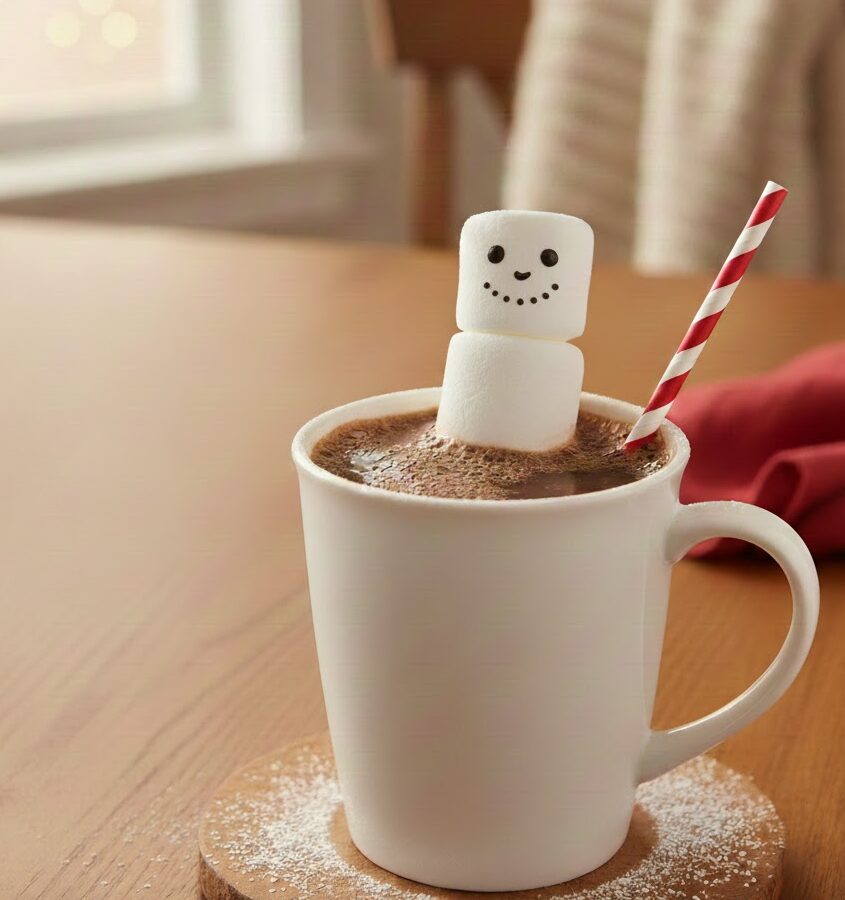 - 「溶けかけ」演出で動きを出す: ミニマシュマロや角砂糖を、あえてココアに半分だけ浸して置くと、溶けかけている「ライブ感」が生まれ、写真に動きが出ます。
